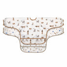 Lässig hihallinen ruokailuessu on helppo pukea, ja se solmitaan nauhoilla niskasta. Ruokalapun edessä oleva murutasku kerää siististi talteen tippuvan ruoan. Tämä hihallinen ruokalappu soveltuu lapselle, joka on iältään 6-24 kk.