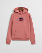 Gant isologollinen huppari nuorisolle. Gantin klassisen tyylikäs ja ajaton paksumpi collegehuppari isommille lapsille ja teineille, kaunis tiilen sävy on helppo yhdistää muihin vaatteisiin. Tässä puuvilla-polyesteristä valmistetussa teini-ikäisten unisex-hupparissa on ikoninen kirjailtu Archive Shield ‑kuvio. American Sportswear ‑tyylisessä mallissa on kengurutasku sekä resorit hihansuissa ja helmassa.