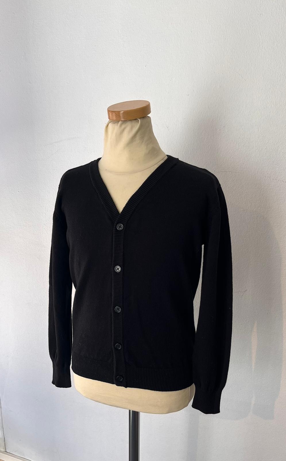 Ajaton ja tyylikäs musta neuletakki lapsille Mingneliniltä. Musta V-aukkoine neuletakki jossa napit edessä.
