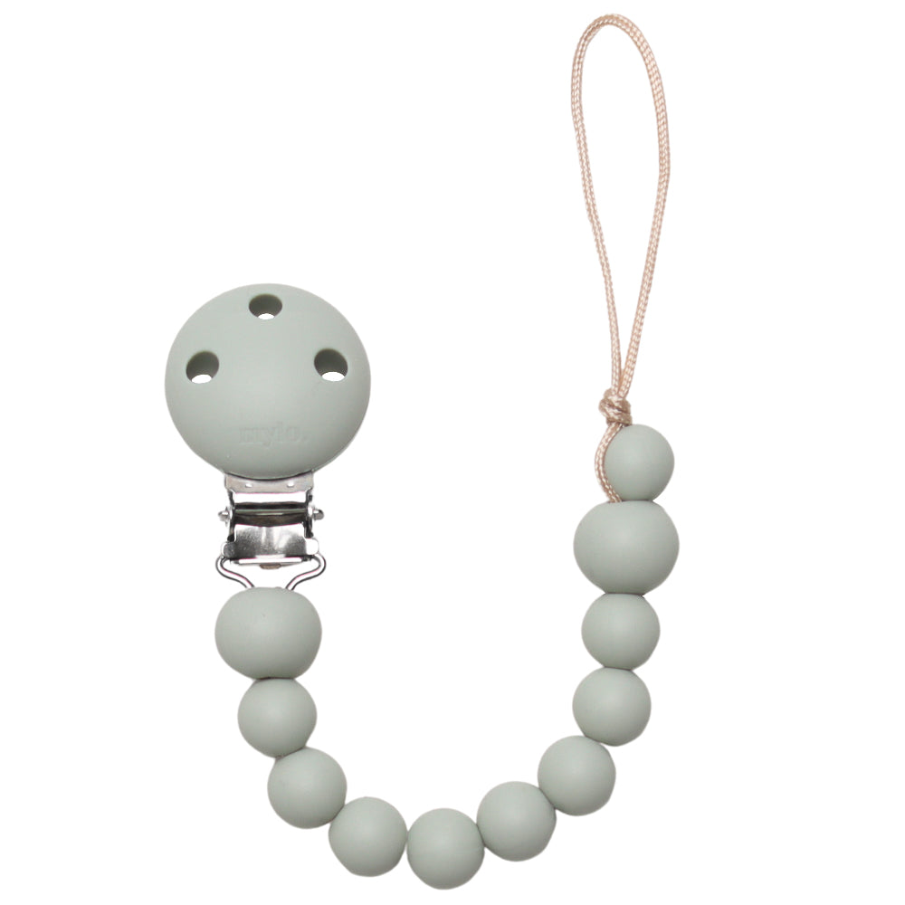 Mylo käyttää tuttinauhoissa myrkyttömästä, bpa-vapaasta, elintarvikelaatuisesta silikonista valmistettuja helmiä sekä kestävää satiininyöriä. Klipsi on valmistettu nikkelivapaasta ja ruostumattomasta metallista. Vastaavat standardin SFS-EN 12586 vaatimuksia.