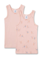 Laadukkaat luomupuuvillasta valmistetut hihattomat aluspaidat tytöille. Pakkaus sisältää kaksi aluspaitaa pyöreällä pääntiellä,